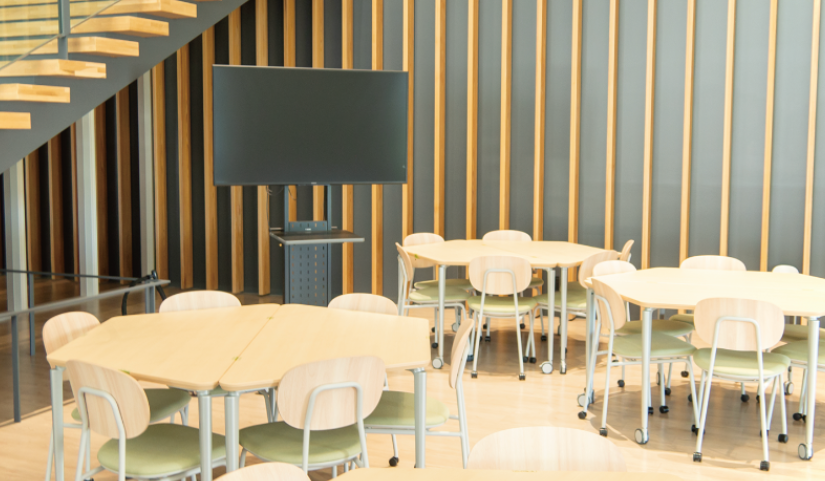 - 少人数のグループワークにも活用できる大型ディスプレイの整備