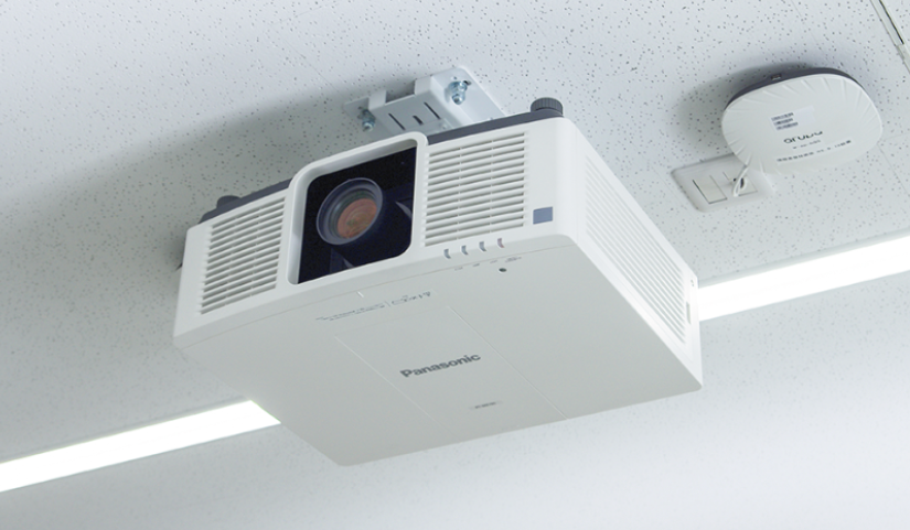 天井に7,000lmの液晶レーザー方式のプロジェクターを設置している。