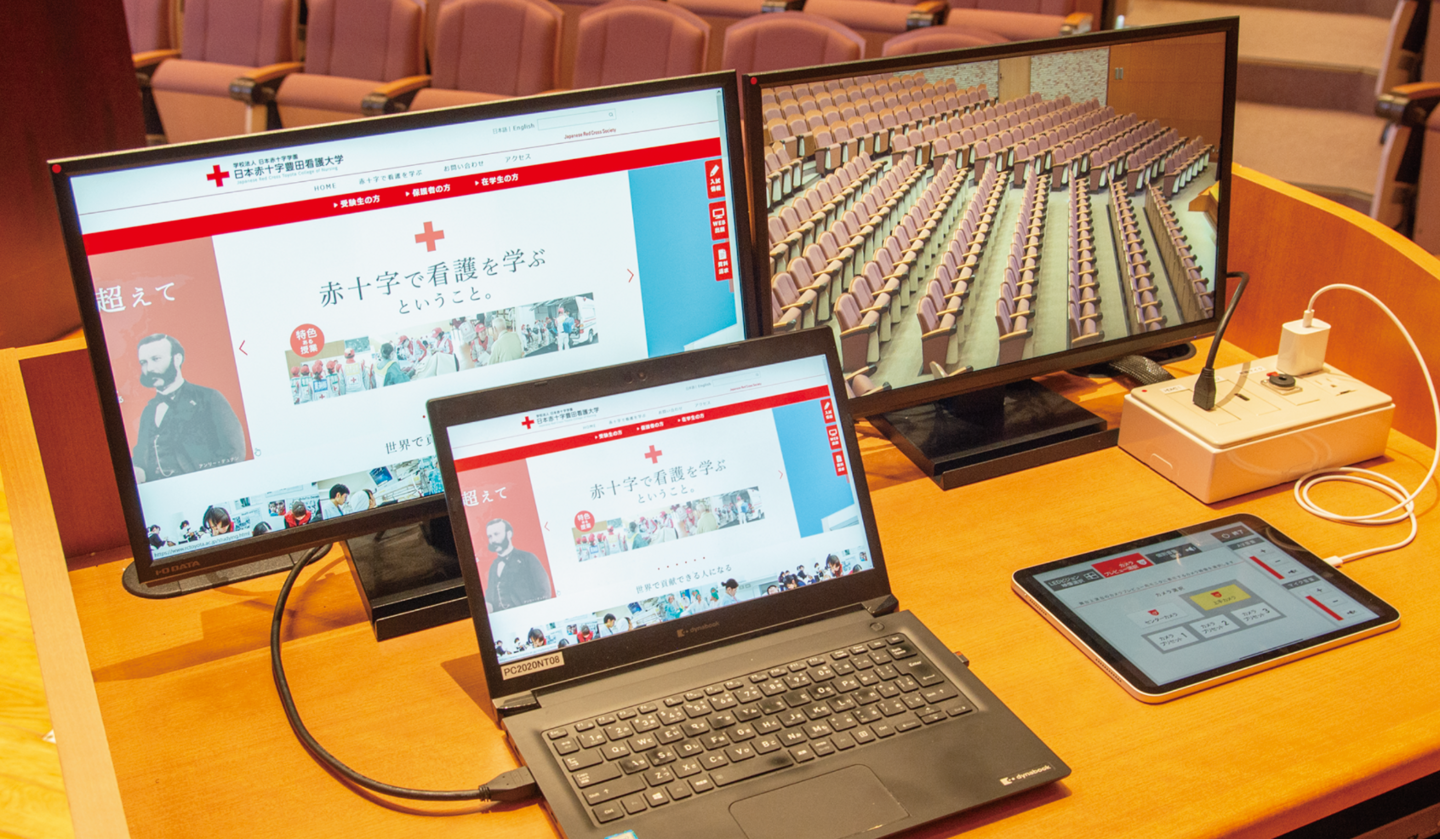 鎌倉学長は最後に「講堂の映像や音響は、以前は慣れていないと使えなかったのですが、誰でも操作できるようになりました。今回の導入は、多くの赤十字関係者からのご支援とご協力で実現できたので、とても感謝しております。」と語ってくださいました。